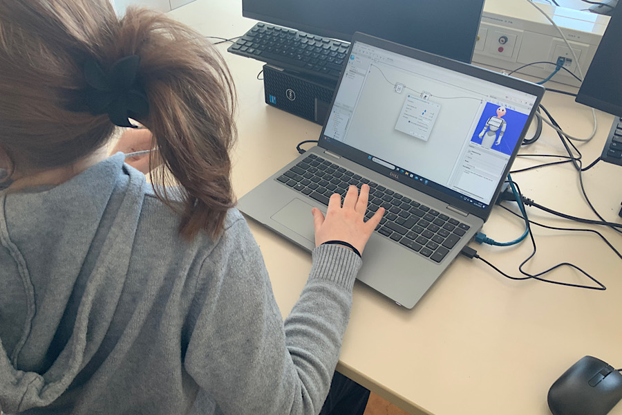Durch die Entwicklung von Virtual Reality ist inzwischen ein moderner und innovativer Weg entstanden, um Roboter zu programmieren. ABB bietet die Möglichkeit, Roboter in einer virtuellen Umgebung zu steuern – mithilfe einer VR-Brille, zum Beispiel der „Meta Quest“ oder „HTC Vive“. Eine VR-Brille ist ein Gerät, das man wie eine große Brille aufsetzt und das eine computergenerierte 3D-Welt anzeigt, in der man sich bewegen und mit virtuellen Objekten interagieren kann.