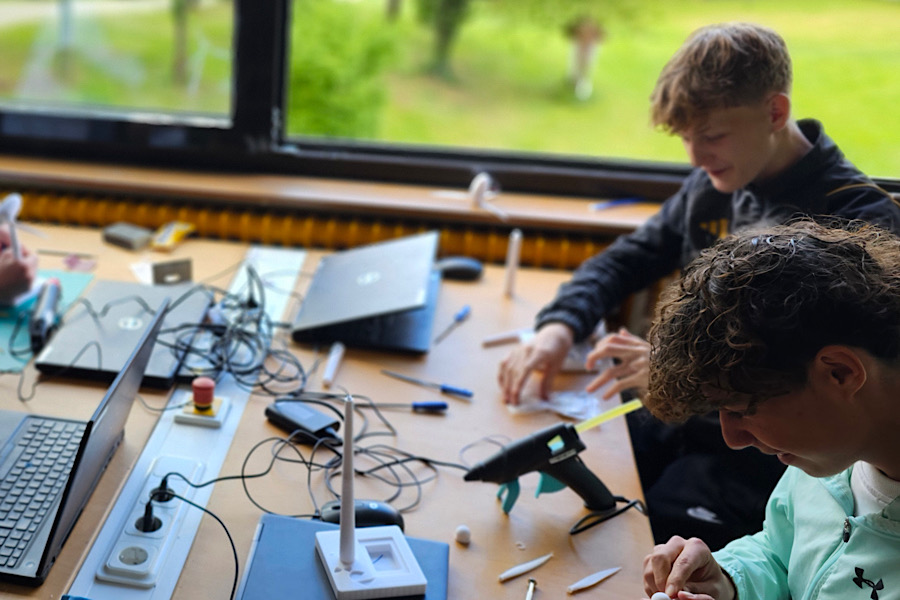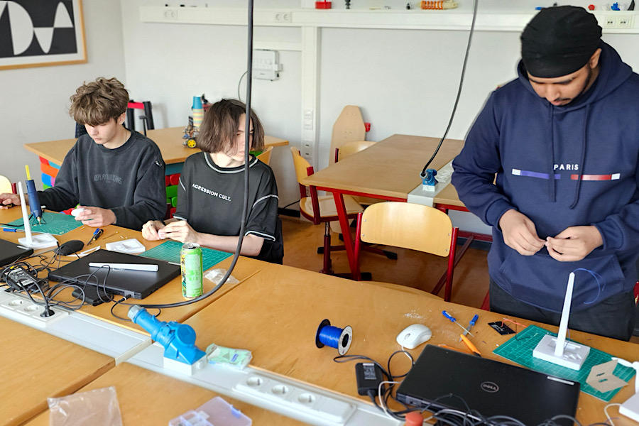 Ein besonderer Schwerpunkt lag dabei auf der Konstruktion des Sockels mithilfe der 3D-Technik. Mit dem CAD-Programm „Tinkercad“ entwarfen die Lernenden individuell verschiedene Designs des Sockels, um diese anschließend mit dem 3D-Drucker zu realisieren. Dabei konnten sie wichtige Erfahrungen im Bereich der digitalen Konstruktion und additiven Fertigung sammeln.