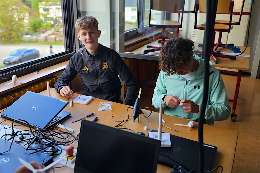 Im elektrotechnischen Teil übernahmen die Schüler die Verdrahtung des Gleichstrommotors mit dem Solarpanel. Sie lernten dabei, einfache Stromkreise korrekt aufzubauen, Lötverbindungen herzustellen und die Funktion der Schaltung zu überprüfen. Durch das Zusammenspiel von Mechanik, Elektronik und nachhaltiger Energiegewinnung entstand ein greifbares Produkt, das sowohl technisch als auch gestalterisch überzeugte.
