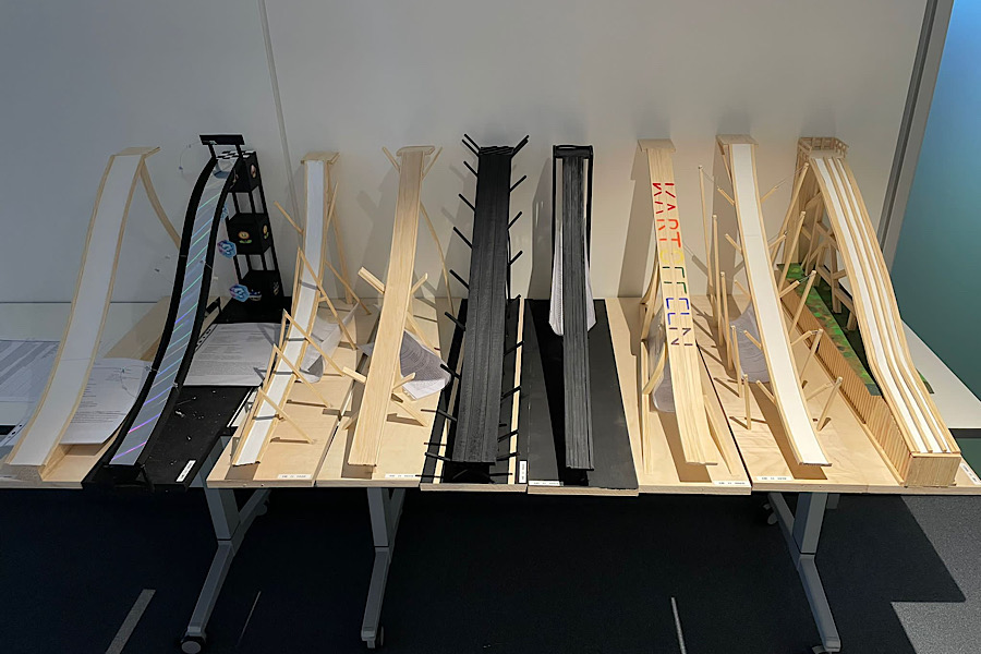Auch in diesem Jahr waren Schülerinnen und Schüler aufgerufen, sich am Schülerwettbewerb zu beteiligen. Aufgabe war es, das Modell einer Ski-Sprungschanze zu entwerfen und zu bauen. Die Konstruktion sollte ein Gewicht von mindestens 500g an der Startfläche der Anlaufbahn tragen können. Bei der Gestaltung waren der Fantasie keine Grenzen gesetzt.