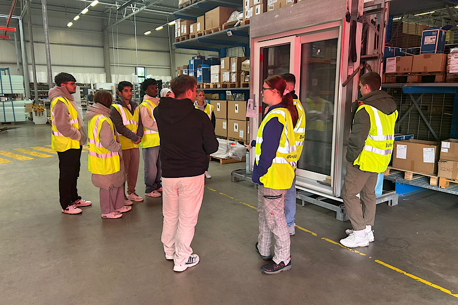 Gerade weil das Thema „Türen“ den Einstieg in das aktuelle Lernfeld 9 bildet, war der Besuch ein perfekter Praxisbezug. Neben einer beeindruckenden Werksbesichtigung erhielten die Teilnehmenden eine Produktschulung sowie spannende Einblicke in die Entwicklung des Familienunternehmens, das bereits 1956 gegründet wurde.