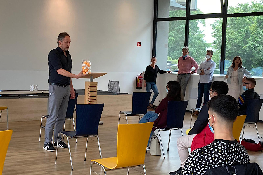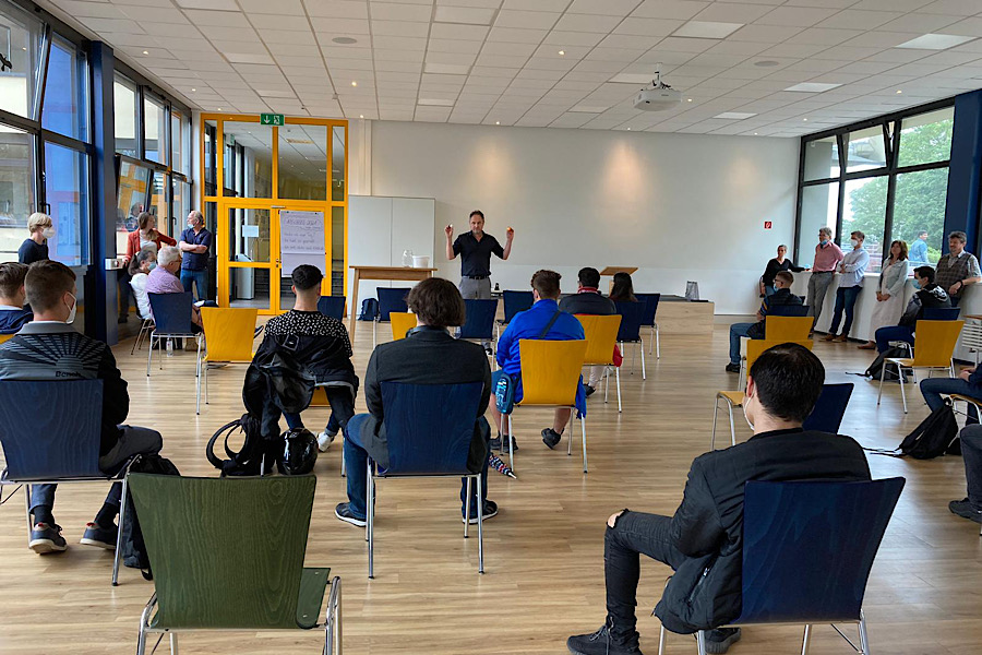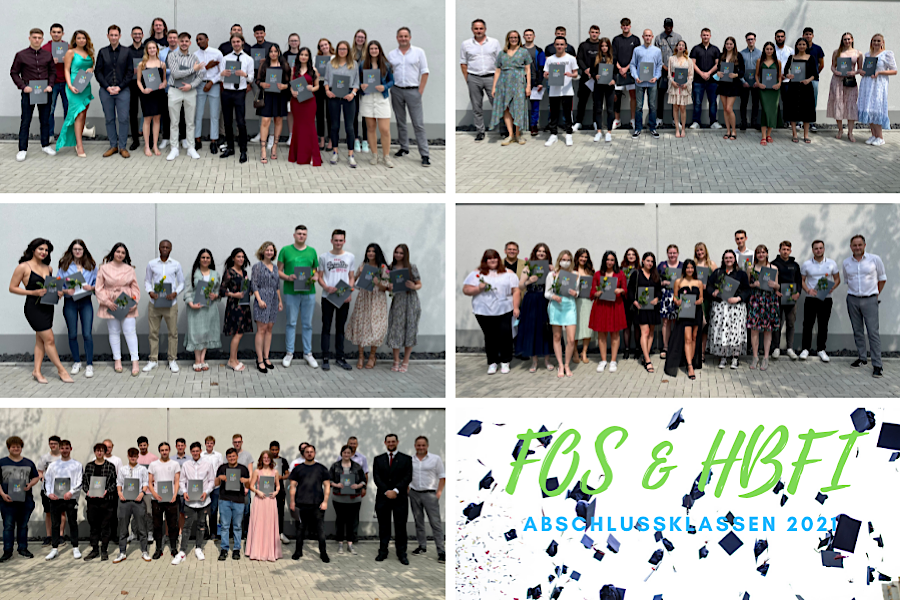 Am vergangenen Freitag fanden die Abschlussfeiern der Höheren Berufsfachschule (HBFS) und der Fachoberschule (FOS) klassenweise in der Aula statt. Rund 170 Schülerinnen und Schüler der beiden Schulformen haben gemeinsam mit ihren Lehrerinnen und Lehrern eineinhalb intensive Schuljahre erlebt, in denen alle immer wieder vor neue Herausforderungen gestellt wurden: Maskenpflicht, Abstand und regelmäßiges Testen, Präsenz-, Wechsel- oder Distanzunterricht, aber auch dick in Winterjacke, Schal und Mütze eingepackt im Klassenraum… Das vergangene Schuljahr war alles andere als normal. Dass es sich bei diesem Jahrgang um den Corona-Jahrgang handelt, ist daher kaum zu leugnen. Allerdings seien die Schülerinnen und Schüler keineswegs ein verlorener Jahrgang, urteilte Stefan Laux, Schulleiter der Friedrich-Dessauer-Schule, der es sich nicht nehmen ließ, an jede Klasse einige Worte zu richten. Die Lernenden mussten sich immer wieder auf neue Situationen einstellen, Hürden nehmen, von denen bis dahin keiner ahnte, dass es sie geben würde, und ihre Prüfungen teilweise im Distanzunterricht vorbereiten. Und genau das sei ihnen enorm hoch anzurechnen, zumal die Prüfungen nahezu wie immer durchgeführt wurden. Lernende und Lehrende haben gemeinsam Lösungen gesucht und gefunden und vielleicht hat gerade diese Unwegsamkeit diesen Jahrgang und die unterrichtenden Kolleginnen und Kollegen noch ein bisschen enger zusammengeschweißt.