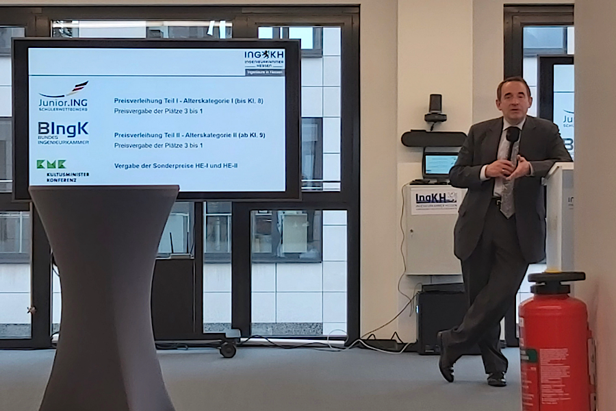 In diesem Jahr haben die Fachlehrer Guido Kingen und Kay Simon wieder mit Schüler/-innen des Beruflichen Gymnasiums der Fachrichtung Bautechnik am Schülerwettbewerb der Ingenieurkammer Hessen teilgenommen. Der Wettbewerb findet zunächst auf Landesebene der jeweiligen Kammern statt, bevor über die Landessieger der Bundessieger ermittelt wird. Jedes Jahr werden neue kreative Ingenieurtalente gesucht.
