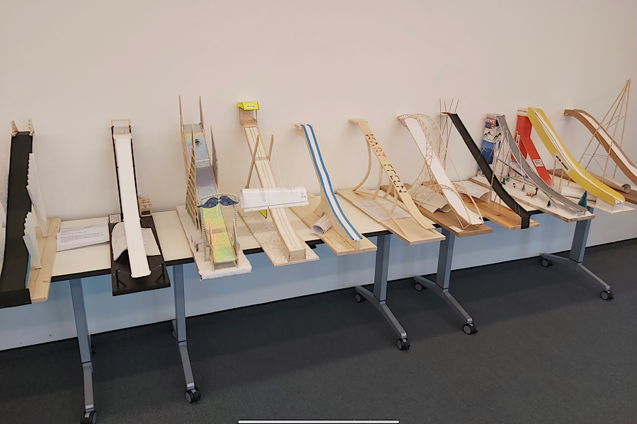 Auch in diesem Jahr waren Schülerinnen und Schüler aufgerufen, sich am Schülerwettbewerb zu beteiligen. Aufgabe war es, das Modell einer Ski-Sprungschanze zu entwerfen und zu bauen. Die Konstruktion sollte ein Gewicht von mindestens 500g an der Startfläche der Anlaufbahn tragen können. Bei der Gestaltung waren der Fantasie keine Grenzen gesetzt.