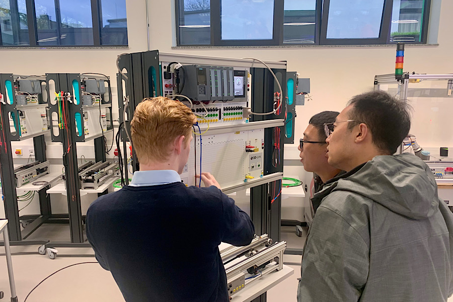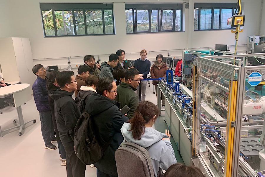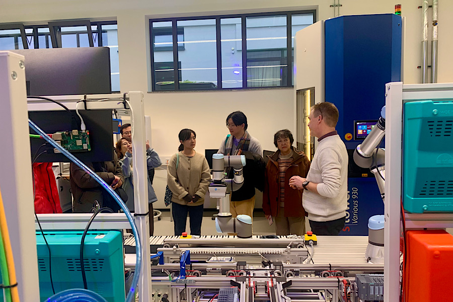 Im Anschluss an die Demonstration fand ein intensiver Austausch zwischen den chinesischen Gästen und den Lehrkräften der Schule statt. Die Delegation zeigte großes Interesse an den didaktischen Ansätzen und der technischen Ausstattung der Lernfabrik. Besonders die praxisnahe Ausbildung und die starke Verbindung zur Industrie wurden als vorbildlich hervorgehoben. Gleichzeitig berichteten die Gäste von den Entwicklungen und Herausforderungen in der beruflichen Bildung in China und diskutierten Möglichkeiten, die Konzepte der Lernfabrik 4.0 in ihre eigenen Bildungseinrichtungen zu integrieren.