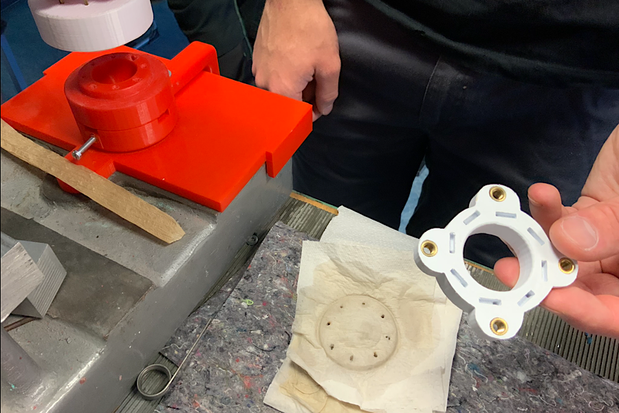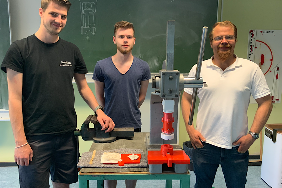 Die Gruppe „Easyforest 360“ von Tobias Hartmann, Lukas Kunz und Tim Volkaert überzeugte mit einer in SolidWorks erzeugten Konstruktion, deren 3D-CAD-Modell mit dem 3D-Drucker der Schule ausgedruckt wurde.