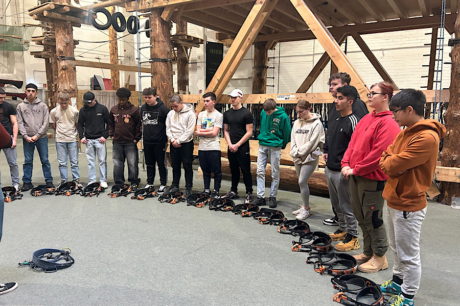 Die Klassen 10bBV und 10 cBV besuchten am 12.12.2024 gemeinsam die Kletterhalle „Nordwand“ in Wiesbaden, um dort eine Teambuildingveranstaltung durchzuführen. Die Schülerinnen und Schüler wurden zunächst von den Profis vor Ort in die sachgemäße Nutzung der Kletterausrüstung eingewiesen und erhielten die notwendigen Sicherheitshinweise. Dann konnte endlich losgelegt werden. Die Schülerinnen und Schüler sicherten sich gegenseitig, sprachen sich Mut zu und unterstützen bei der Findung der passenden Klettergriffe. Bei einem anschließenden Bummel durch Wiesbaden konnten sich die beiden Klassen weiter kennenlernen. Auf der Rückfahrt wurde besprochen, dass die Klassen gerne ein zweites Mal gemeinsam den Kletterpark „bezwingen“ wollen. Der Grundstein für weitere gemeinsame Projekte und Ausflüge ist also gelegt.