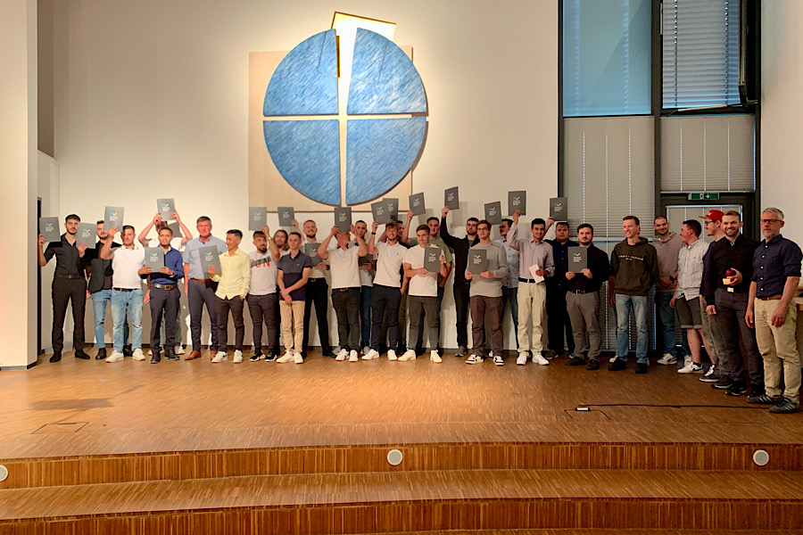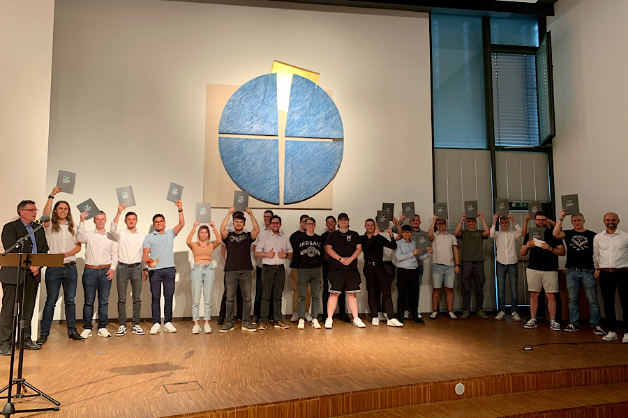 Anschließend wurden die einzelnen Fachbereiche nacheinander geehrt und alle Absolventinnen und Absolventen erhielten ihre Zeugnisse von den jeweiligen Fachlehrerinnen und Fachlehrern. Nach einem gemeinsamen Foto, auf dem die Zeugnisse stolz und freudig präsentiert wurden, erfolgte die Übergabe der IHK-Zertifikate. Diesem abwechslungsreichen Programm, welches von Oliver Koch zusammengestellt wurde, schloss sich das gemeinsame Sommerfest an. Hier ließen alle Anwesenden den Abend mit kühlen Getränken und Speisen vom Grill ausklingen.